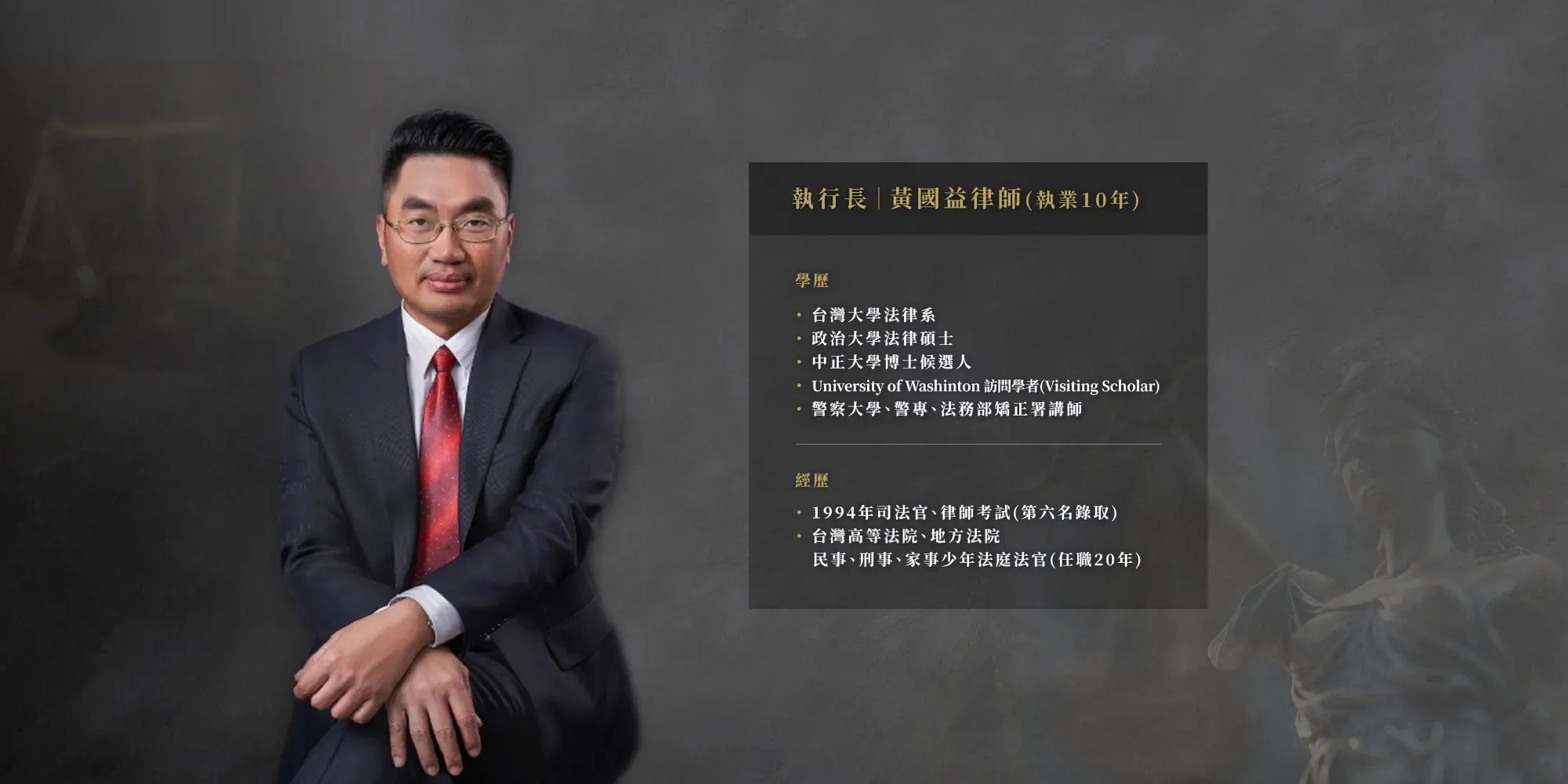 關於本所各主持律師、顧問律師之團隊戰功,可從公開之法院判決網站查詢取得受委任處理之一切刑事冤屈平復、公司經營維護、工程履約爭議、商標智財侵害防範,甚至家族傳承設計等成功案例,此等結晶皆係團隊超過30年以上之審判、訴訟經驗累積之專業戰鬥力為客戶所爭取之最佳利益。